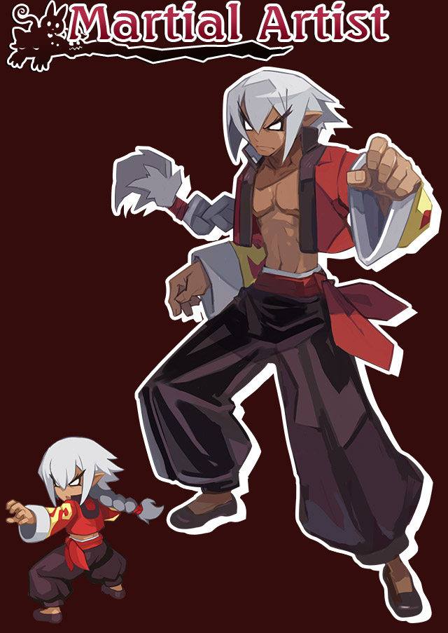 These men train their bodies to the limit and try to master their own way. They envelop their bodies with dark energy and can fight against any weapon with just their fists. They genuinely believe that fighting determines true justice. It is said their techniques originated from a legendary martial artist who came from the Human World. They dress like their ancestors.