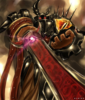 "Dynamic was the first word that came to mind when I saw this pece! The artist has definitely captured the dangerous mood of the Dread Knight." -Taniel