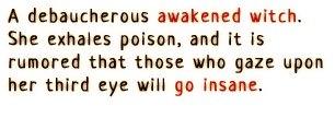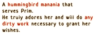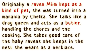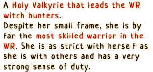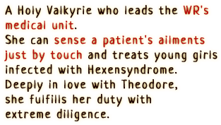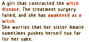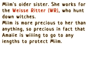 An awakened witch who inhabits the body of Milm. She pursues freedom with reckless abandon and disregard for others. Though extraordinary power dwells within her, her awakening as a witch is incomplete, and thus she will occasionally turn back into Milm.